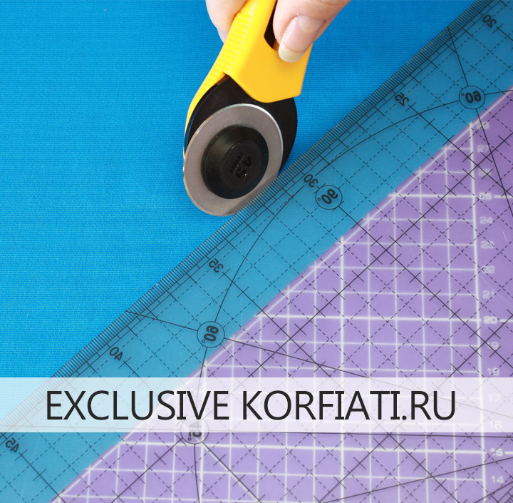 Выкроите детали обтачек необходимой ширины под углом 45°. Выкраивать обтачки с идеально ровными краями можно с помощью роликового ножа, раскройного мата и специальной линейки.