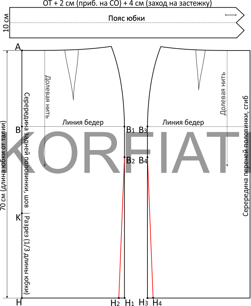 А как покроить юбку карандаш с разрезом сбоку