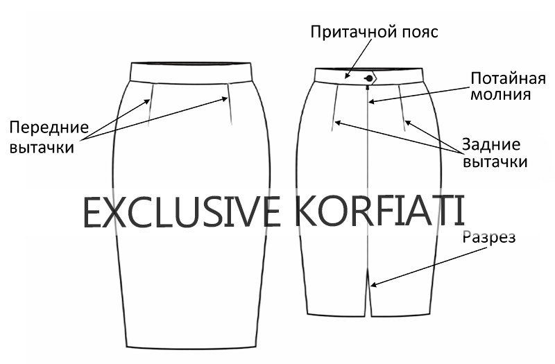 Наша твидовая юбка-карандаш максимально минималистична. Эскиз юбки-карандаш показан на рис. 1.