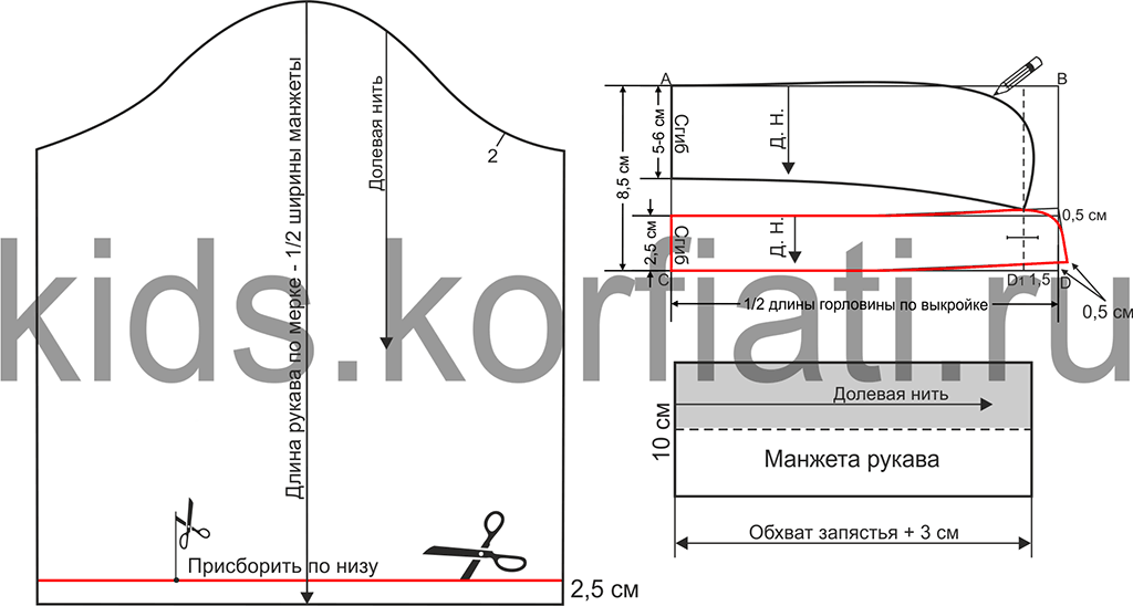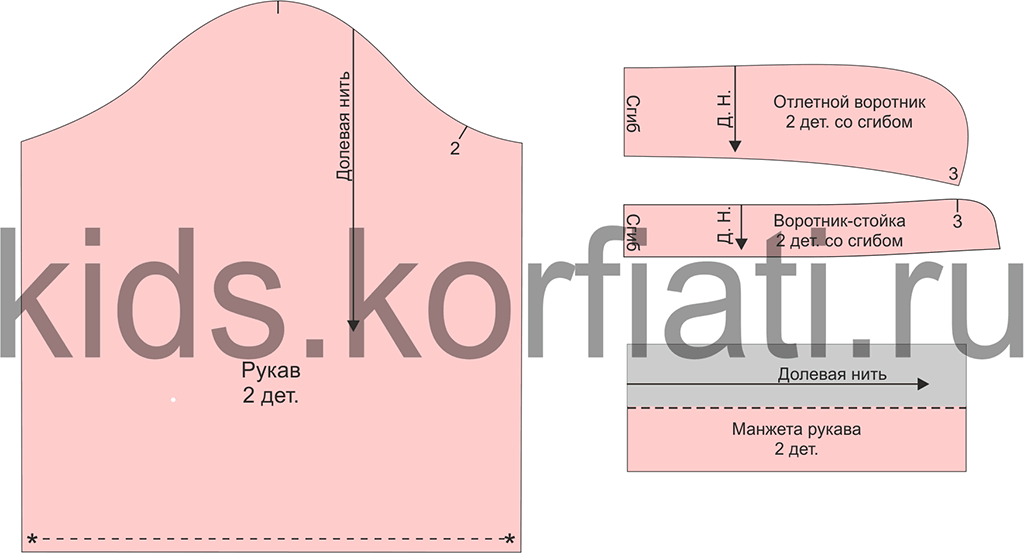 к оглавлению ▴Выкройка рукава, воротника и манжеты к блузке для девочки