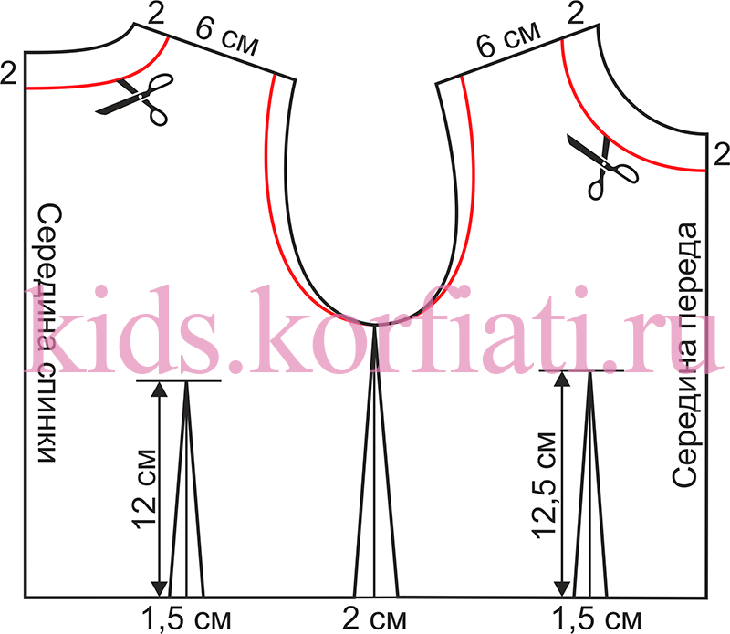 Полина, в данном платье все припуски на швы и подгиб составляют 1,5 см. Для ребенка достаточно припусков на низу короткого рукава — 1,5 см, длинного — 2 см.