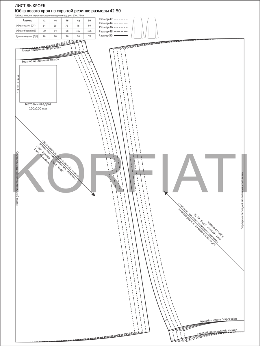 к оглавлению ▴Как скачать и распечатать выкройку юбки косого кроя на скрытой резинке