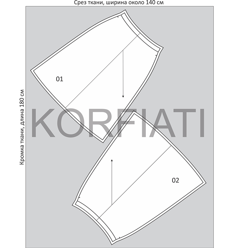 - 02 Передняя половинка юбки — 1 дет. со сгибом.