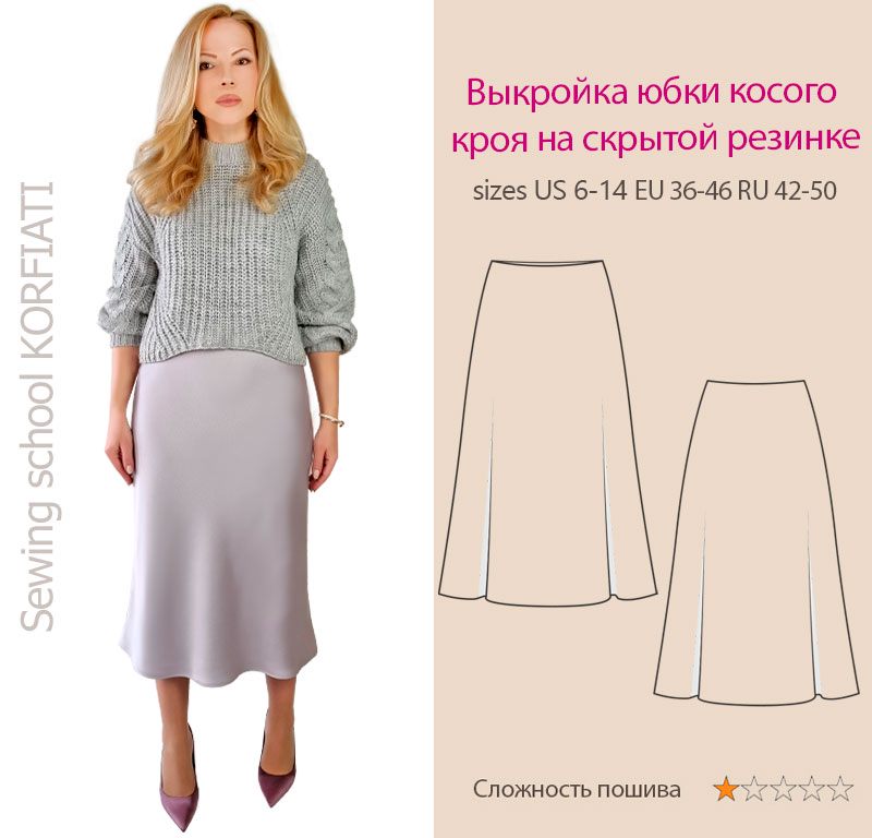 Супер-актуально! Скачайте выкройку юбки косого кроя на скрытой резинке