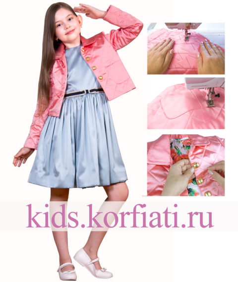 Стеганные изделия находятся на пике популярности, и многие мастерицы увлекаются стежкой и с удовольствием создают собственные неповторимые орнаменты. Предлагаем вам приобщиться к данному виду творчества и сшить укороченную стеганную куртку для девочки из переливчатого атласа Dupon. Яркая цветочная подкладка и золотые металлические пуговицы, напоминающие по форме «ириски», как нельзя лучше сочетаются в этом изделии и создают по-девичьи игривый образ.